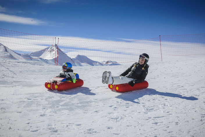 Подростки могут наравне со взрослыми веселиться на катке, ходить в горы на снегоступах, кататься на фэтбайках и беговых лыжах. Можно пострелять на биатлонной арене, попробовать квадроциклы и картинг на снегу – дети старше восьми лет допускаются к управлению, а также сани и тюбинг. Малыши могут кататься на мини-фэтбайках или в специальных детских креслах Charriot.