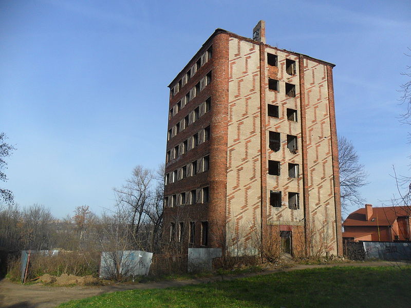 Дальше – огибаем драматический театр, заходим за студенческое общежитие педагогического университета и оказываемся у очень интересного здания. Это дом-коммуна, первый смоленский «небоскреб», построенный в 30-х годах прошлого века. В народе его называют «Чайник» – рядом открывается просто невероятный вид на долину Днепра.