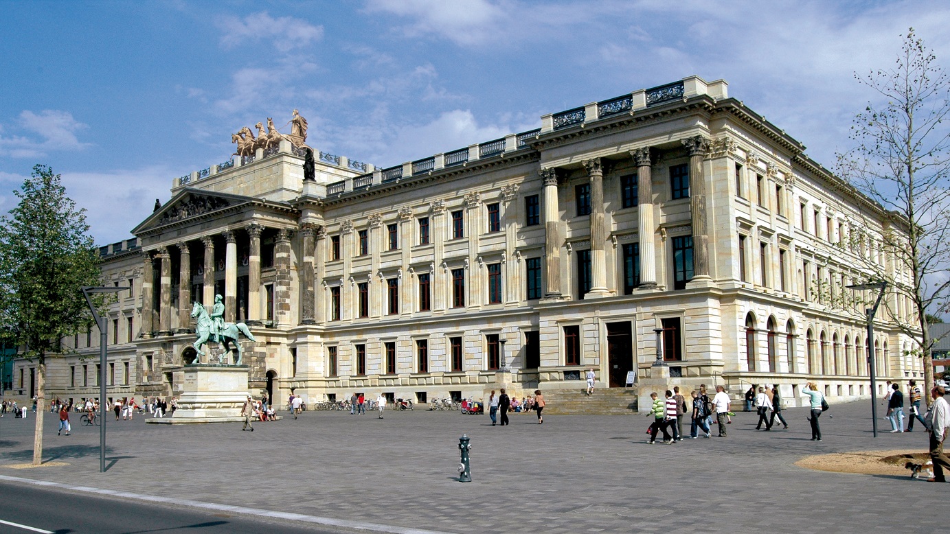Дворец-резиденция Вельфов был воссоздан по старым чертежам и фотографиям точь-в-точь. И также как раньше его портик украшает крупнейшая квадрига Европы, которой управляет богиня Брунония, считающаяся покровительницей города.