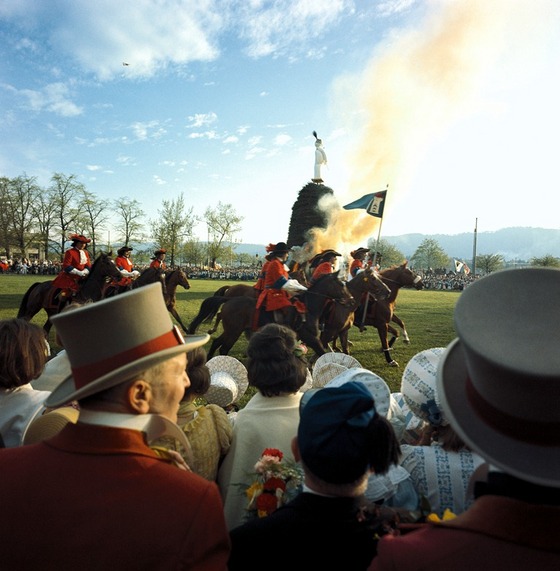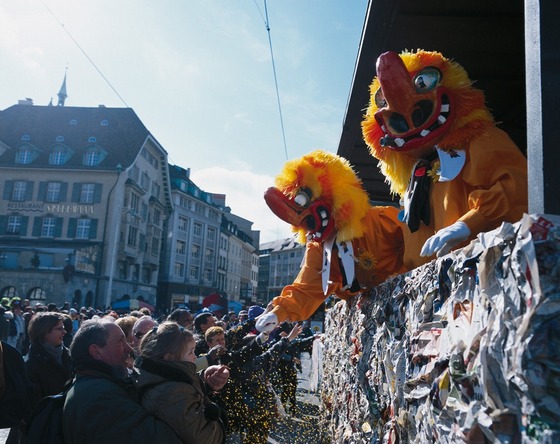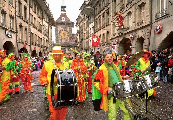 Швейцарские карнавалы - очень красочное зрелище. Во время них обычно сдержанные и строгие, швейцарцы наряжаются в безумные костюмы и маршируют по улицам города, громко и невпопад играя на музыкальных инструментах.