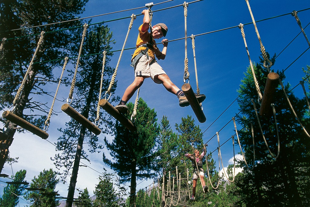Оно и неудивительно: почти половина здешних посетителей приезжают на курорт летом и осенью. Не только затем, чтобы побродить по прохладным горным тропам, проложить свой собственный велосипедный маршрут, пообедать в самом высоком в мире вращающемся ресторане и, наконец, покататься на лыжах. Для другого курорта этих занятий вполне хватило бы на весь отпуск. Но не для Саас-Фе. Недавно здесь открылся Adventure Park – «Парк приключений», лесная полоса препятствий с элементами скалолазания, альпинизма и с массой захватывающих испытаний.