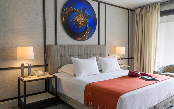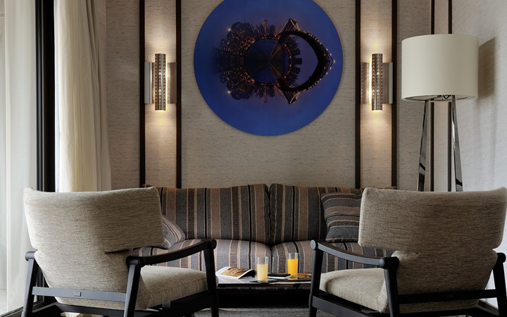 Дизайн номеров выполнен в современном стиле с элементами арт-деко. Натуральные оттенки подчеркнуты яркими аксессуарами: пледами на кроватях, бокалами из муранского стекла и фото Чарльза Мэйза из серии Anamophoses.