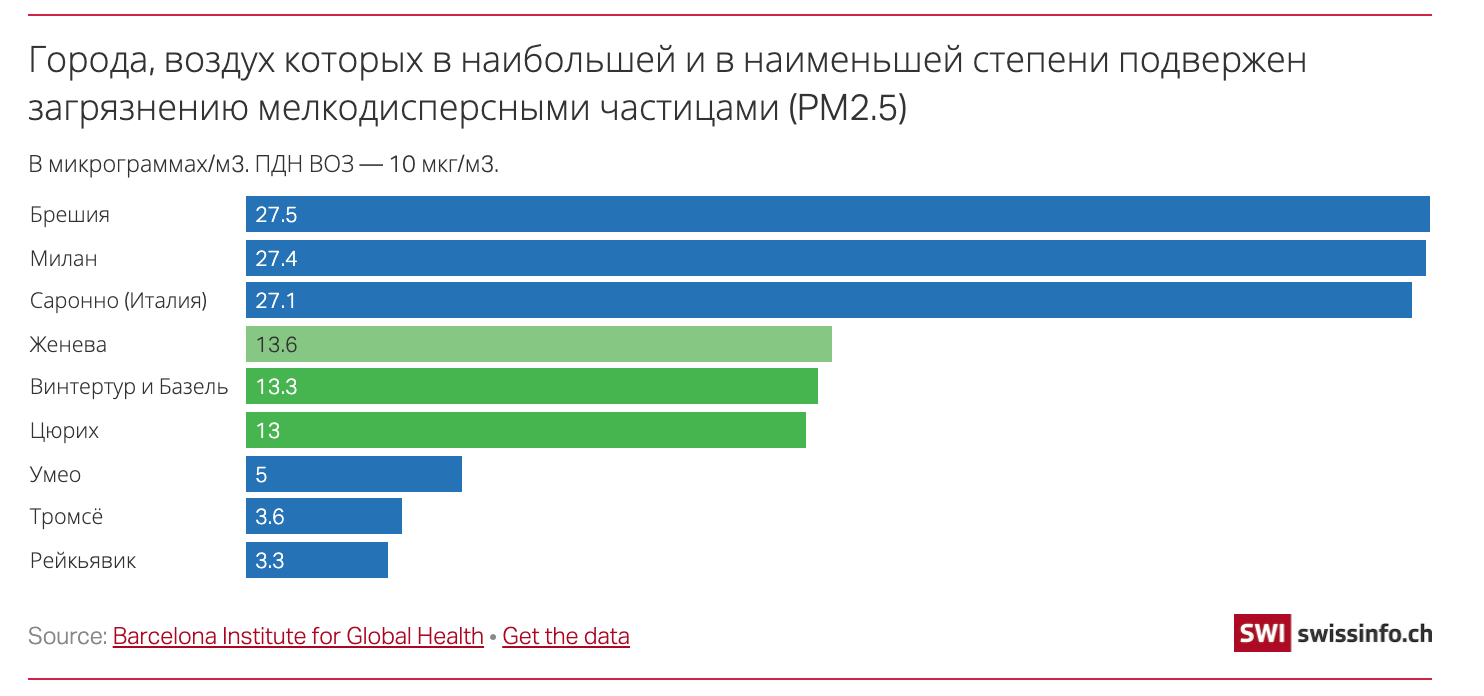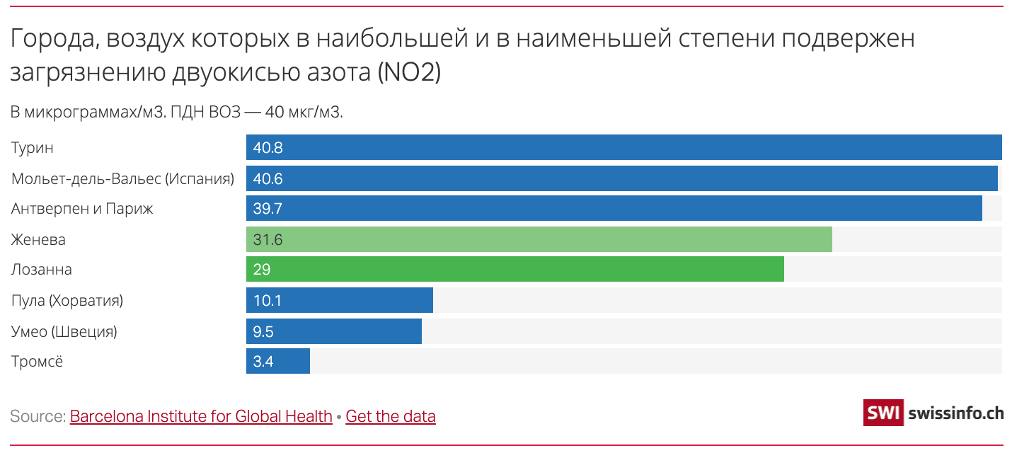 В исследовании воздействия окружающей среды на здоровье впервые были оценены случаи смерти, связанные с загрязнением воздуха, в более чем 1000 европейских городах, пишет Swissinfo.