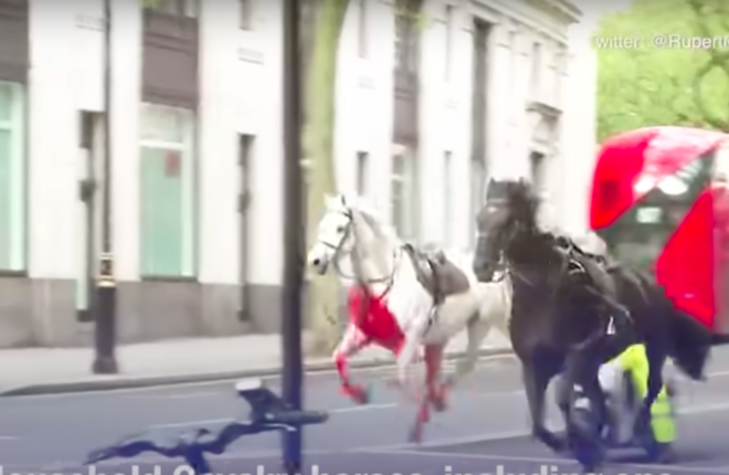Лошади королевской конной гвардии взбунтовались и в панике бегали по центру Лондона, врезаясь в людей и автомобили.