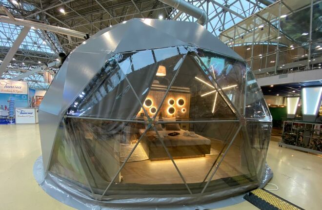 На выставке «ОТДЫХ Leisure 2022» в Москве компания КуполХолл представила новый полноценный жилой, экологичный купол с дизайнерским ремонтом для размещения туристов.