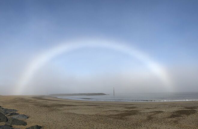 Жители юго-восточных английских графств Норфолк, Саффолк и Эссекс увидели редкое погодное явление — бесцветную туманную радугу.