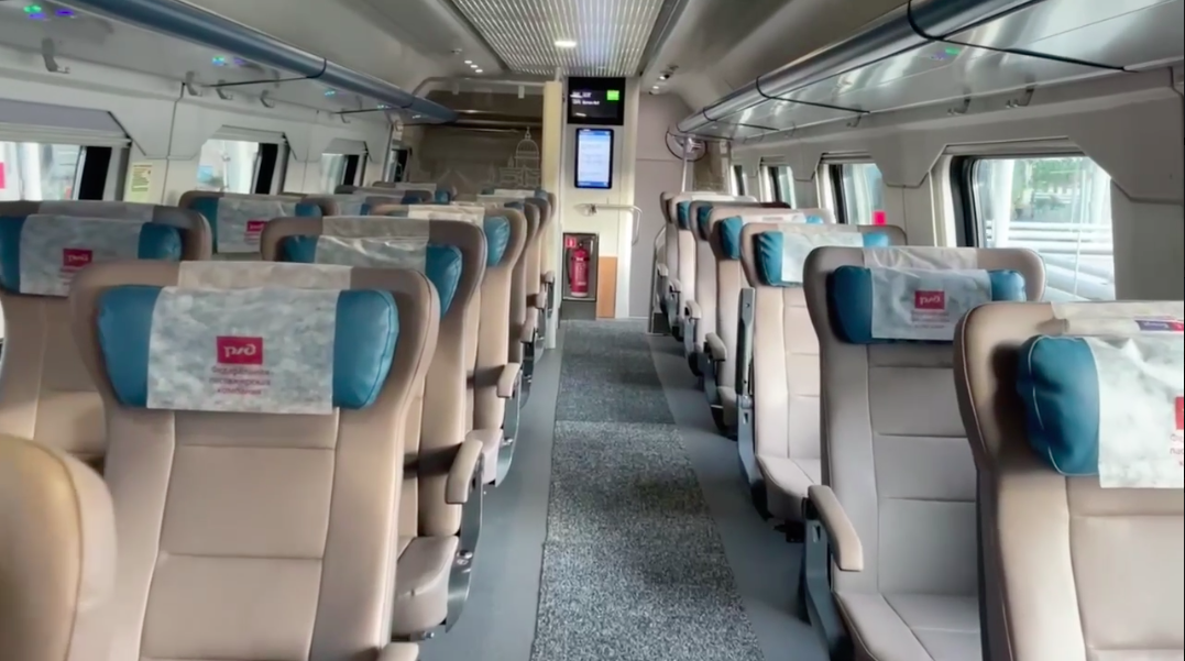Поезда состоят из 15 двухэтажных вагонов и могут вместить более 1 тысячи пассажиров. В составе — вагоны для сидения стандартной и улучшенной компоновки, вагон СВ, штабной вагон и вагон-ресторан. В вагонах улучшенной компоновки кресла можно разворачивать на 180 градусов, а также имеется отдельное купе с монитором. «Фонтанка» рассказывала, какие удобства предусмотрены в поезде.