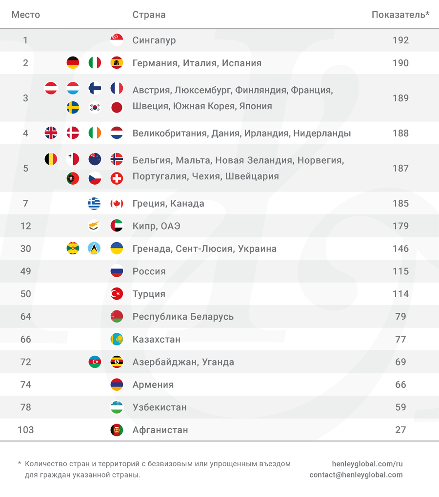 Общая тенденция за 18-летнюю историю составления рейтинга сводилась к тому, что количество безвизовых направлений для всех стран неукоснительно росло год от года. Среднее количество стран за эти годы почти удвоилось с 58 в 2006 году до 109 в 2023 году. При этом и разрыв в возможностях паспортов разных стран тоже – держатели паспорта Сингапура могут посетить без визы на 166 стран больше, чем граждане Афганистана, занимающего последнее, 103-е место (27 безвизовых направлений).