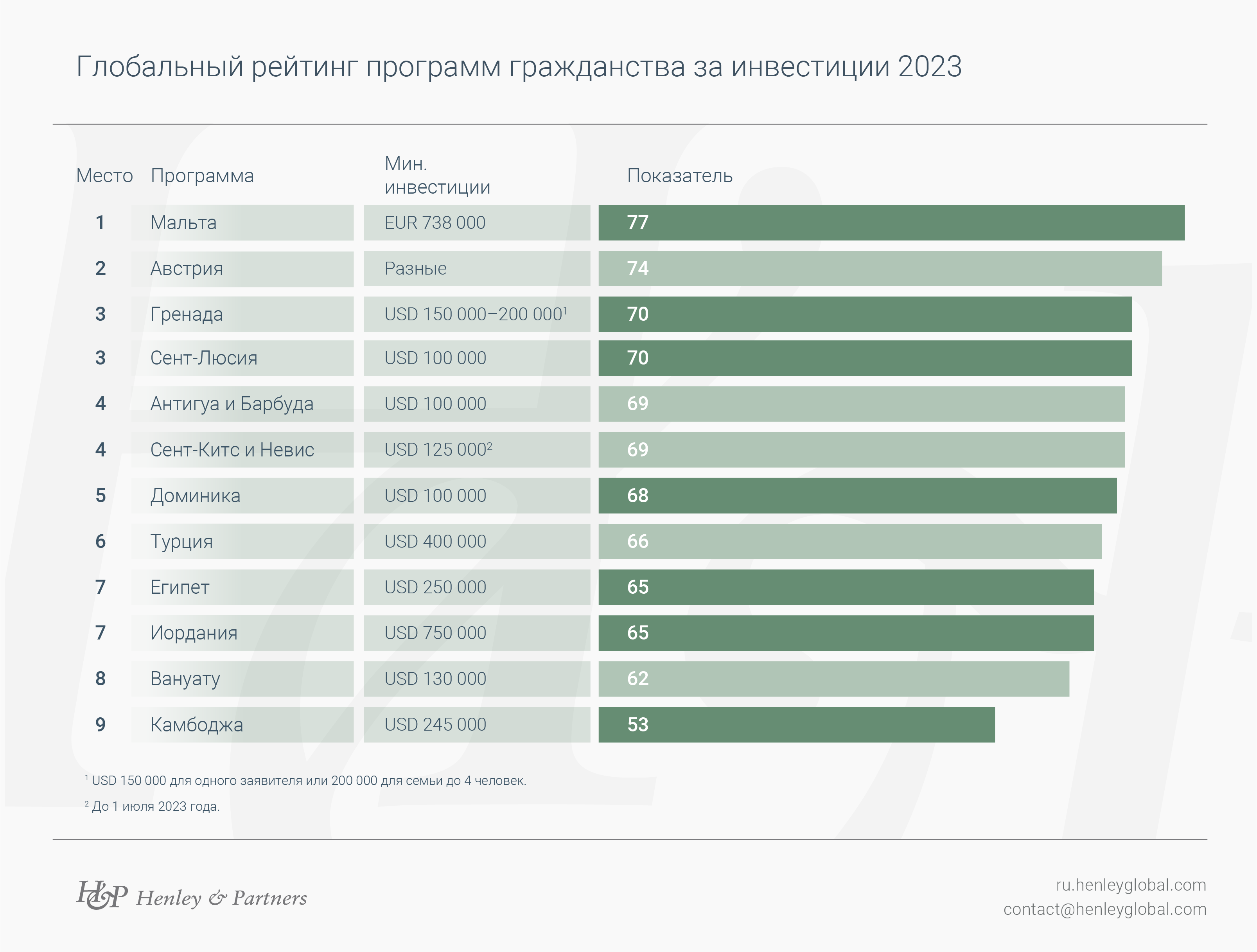 Глобальный рейтинг программ гражданства за инвестиции