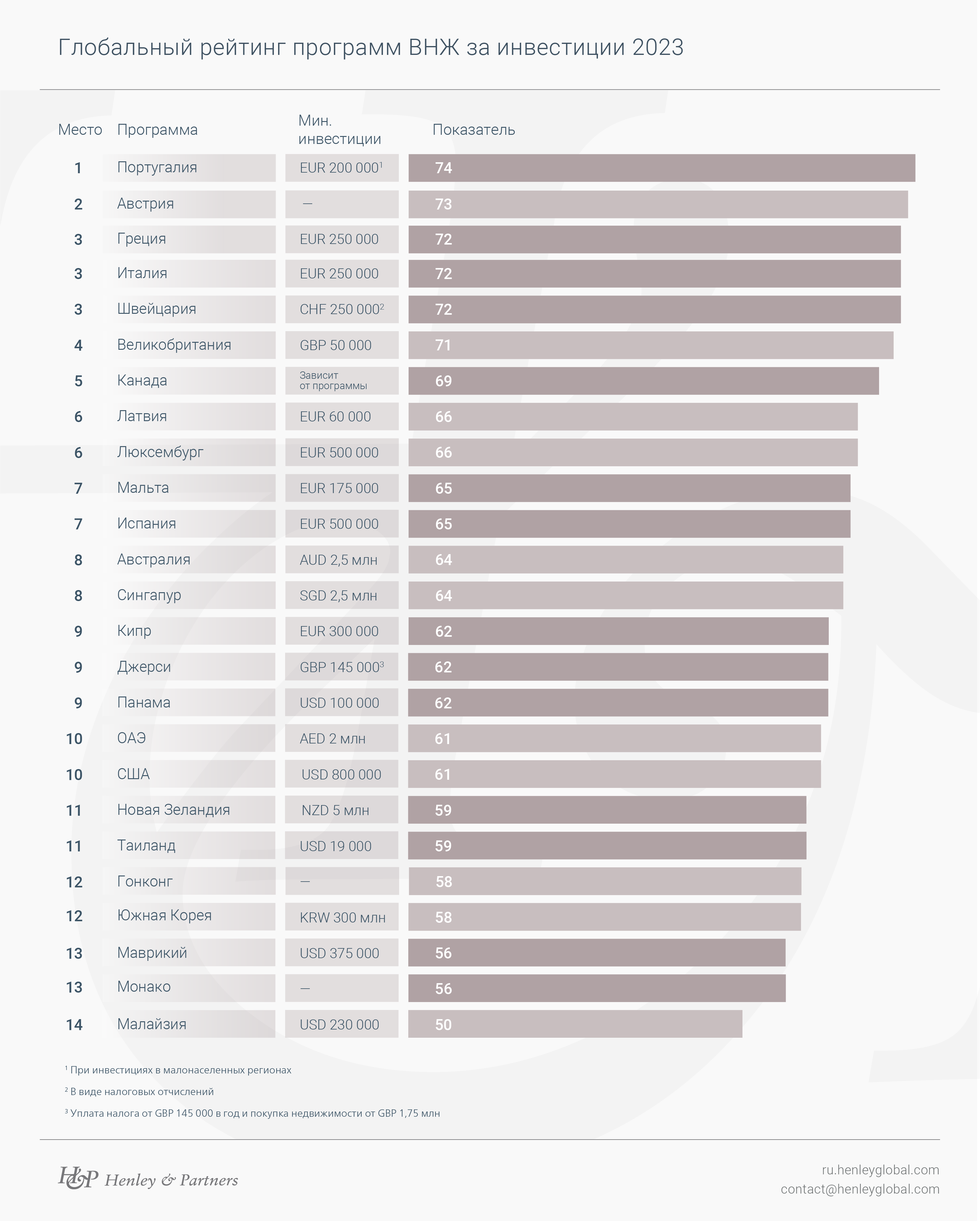 Глобальный рейтинг программ ВНЖ за инвестиции